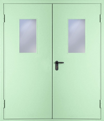Двупольная противопожарная дверь со стеклом EI 60 (RAL 7035)